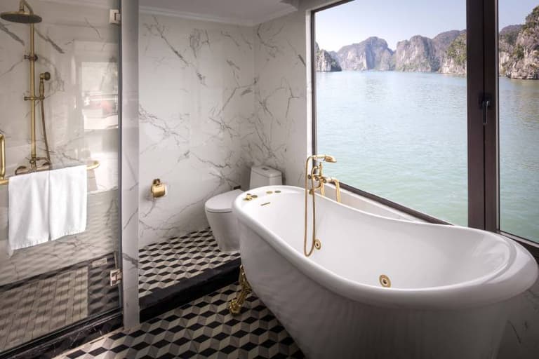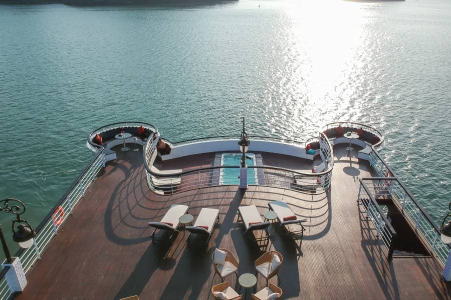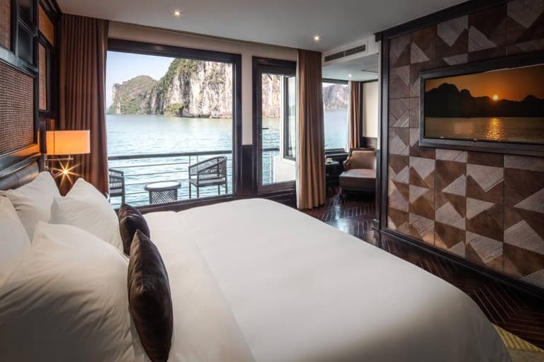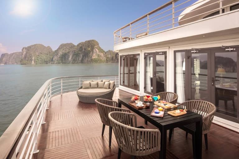 Ambassador I Cruise stands as one of the largest 5-star overnight cruises in Ha Long Bay. Ambassador I Cruise offers a luxurious and peaceful vacation experience amidst the natural Heritage. This Ambassador I Cruise ship is fully equipped with amenities, a 360-degree sundeck, a jacuzzi, a transparent glass bridge and many other high-class amenities. Choosing Ambassador I Cruise, tourists will enjoy a relaxing vacation with the hospitality of the crew, enjoy fine cuisine and participate in exciting activities. An unforgettable journey awaits on Ambassador I Cruise.
