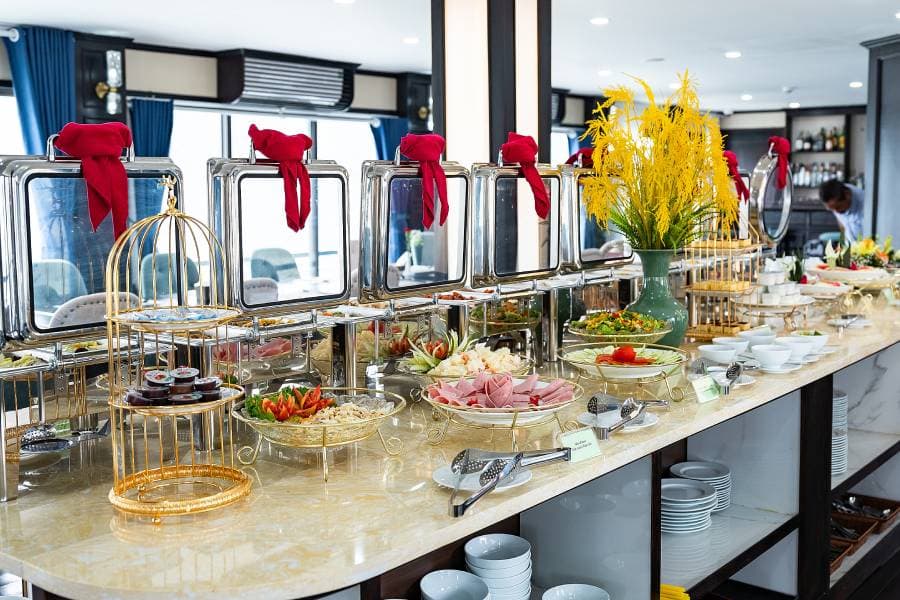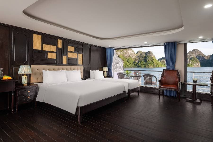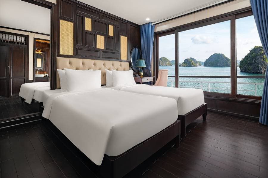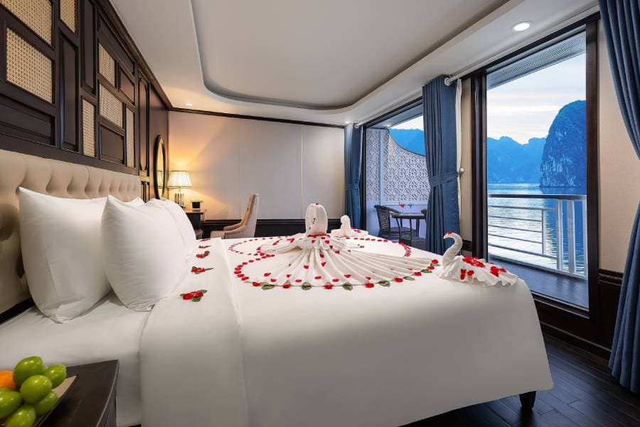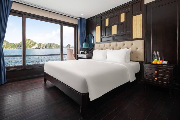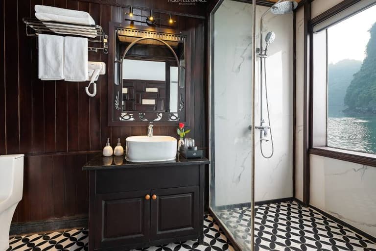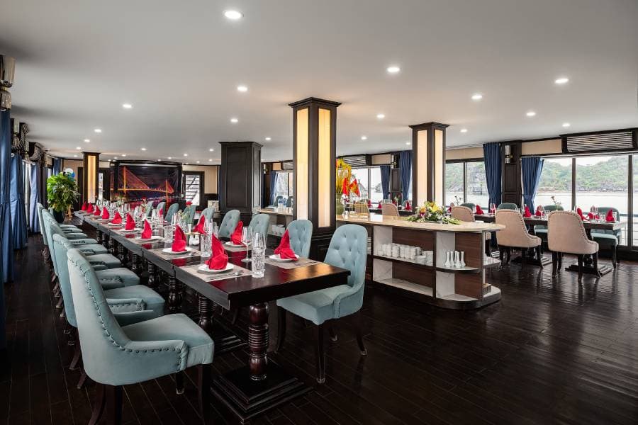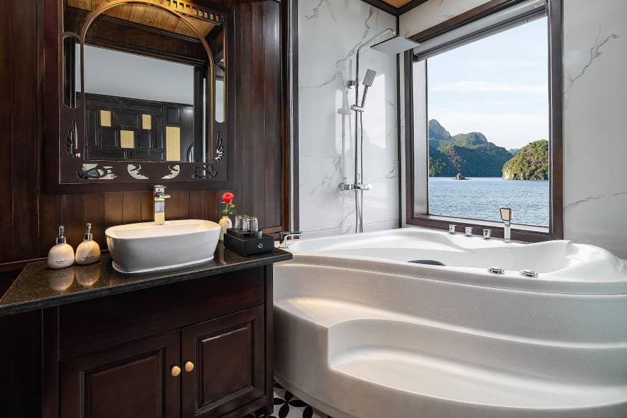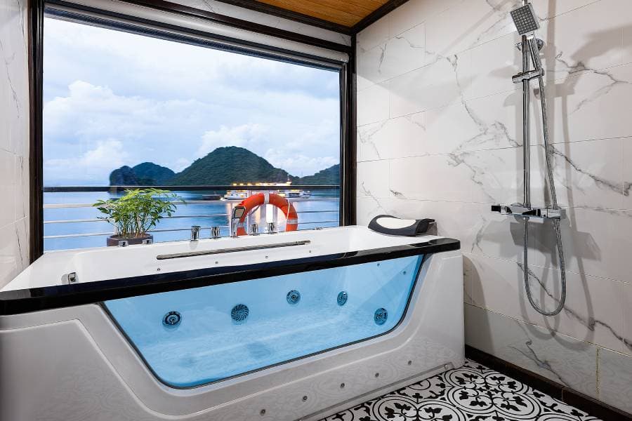Aqua Elegance Ha Long Cruise boasts 21 spacious cabins, ranging from 26 to 50 square meters, each uniquely equipped with its own jacuzzi. This feature gives visitors on the Aqua Elegance Ha Long Cruise the perfect opportunity to relax while admiring the stunning landscape of Ha Long Bay. The cabins are designed with modern amenities, ensuring a comfortable and luxurious stay aboard the Aqua Elegance Ha Long Cruise. Truly, for an indulgent escape, the Aqua Elegance Ha Long Cruise ensures visitors experience unparalleled comfort as they discover the wonders of the bay with Aqua Elegance Ha Long Cruise.