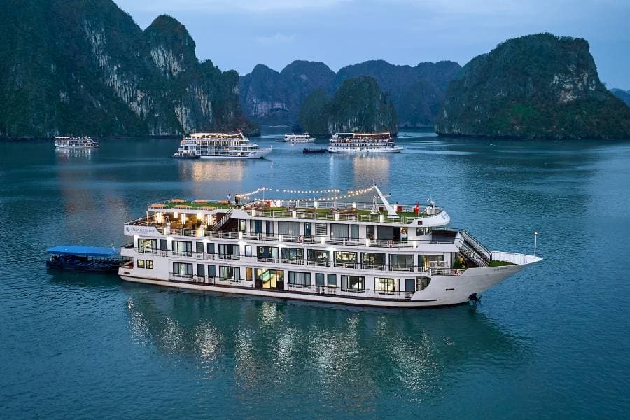 Aqua Elegance Ha Long Cruise is truly the perfect choice for your journey to explore Halong Bay. The Aqua Elegance Ha Long Cruise, newly built in 2018 and fully renovated in 2024, promises to bring you classy and luxurious experiences. This 5-star Aqua Elegance Ha Long Cruise is designed in a modern style yet still retains the traditional features of Vietnamese culture. With a team of professional, enthusiastic, and friendly staff, the Aqua Elegance Ha Long Cruise is committed to bringing visitors a truly classy experience when exploring Halong Bay.