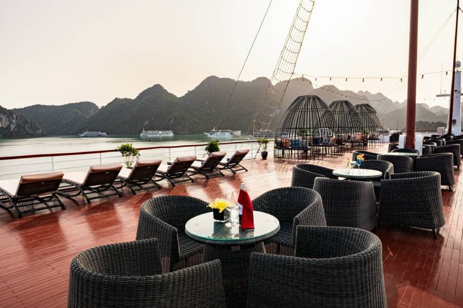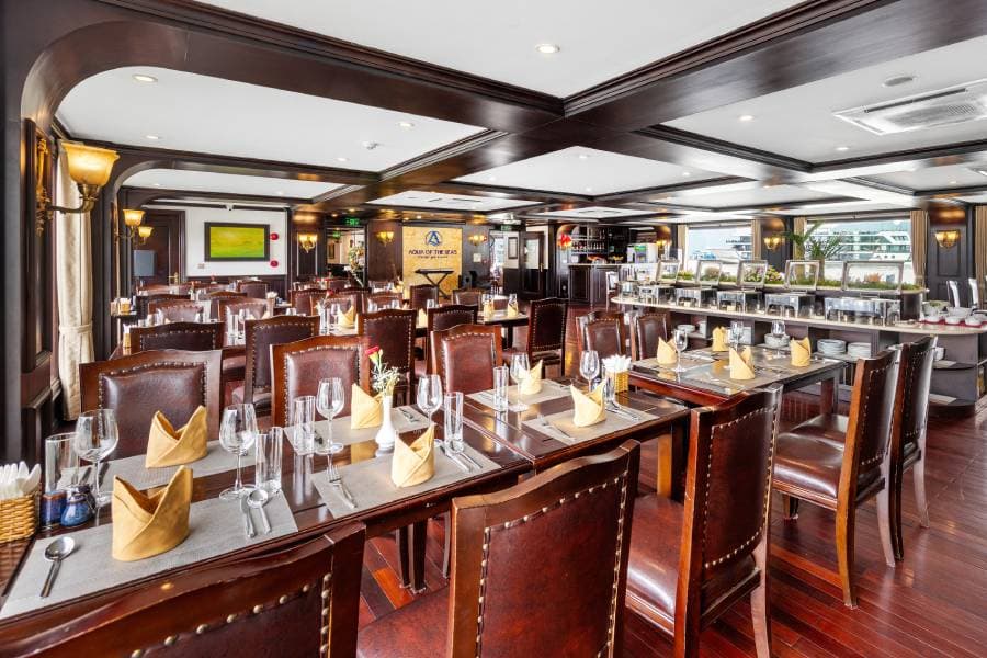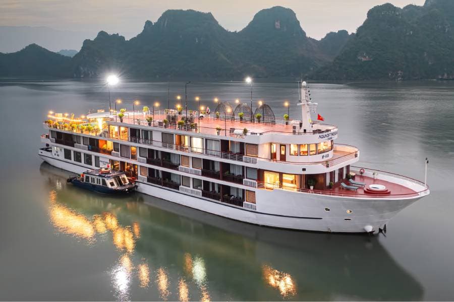 Aqua Of The Seas Cruise is one of the largest cruise ships in Ha Long Bay, newly launched in February 2023, promising to bring completely new experiences on a trip between the natural wonders of the world. You will have the opportunity to enjoy attractive luxury cuisine on the cruise. Aqua Of The Sea Cruise can accommodate up to 60 guests and a premium set menu with European flavors.