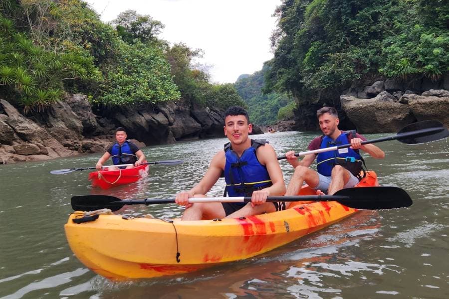 Participate in Kayak and bamboo boat rowing activities, visit caves