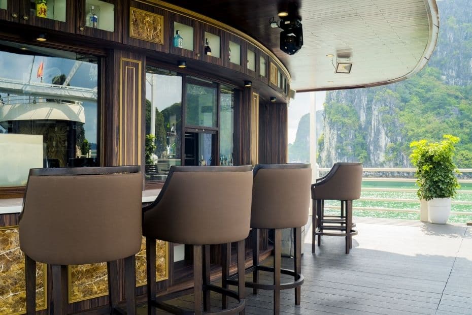 Athena Luxury Cruise is the brand new five-star luxury cruise vessel in Ha Long Bay. Athena Luxury Cruise has 3 decks: a lower deck with reception, cabins, and boarding area, a middle deck with cabins, an indoor restaurant and bar, and a rooftop sundeck with open bar, coffee lounge, spa and sauna. On board the Athena Luxury Cruise there are 21 high-end cabins with 5 different styles available to custom-tailor your voyage with us.