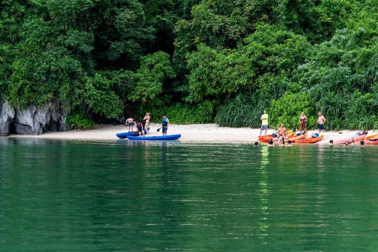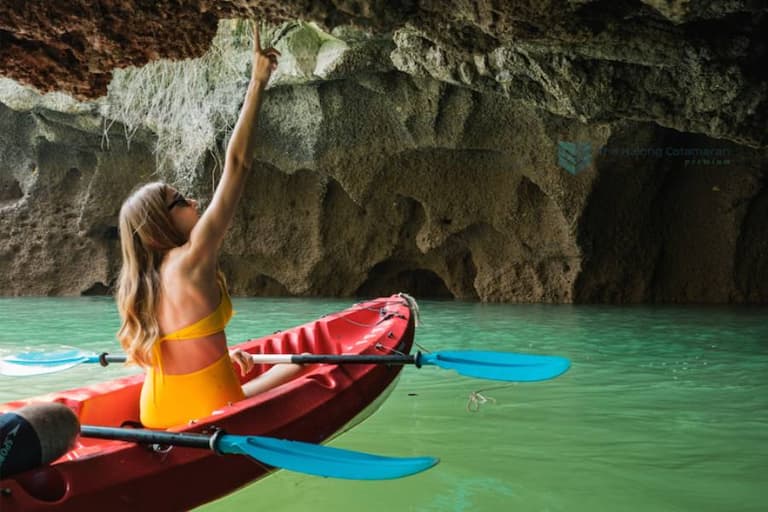 The first destination of the Orchid Classic cruise is Dark and Bright Caves. Here, guests can kayak through the rock formations, feel the cool water, and admire the sparkling stalactites on the cave ceiling. This area is also home to various marine creatures like coral, small fish, golden monkeys, and more.