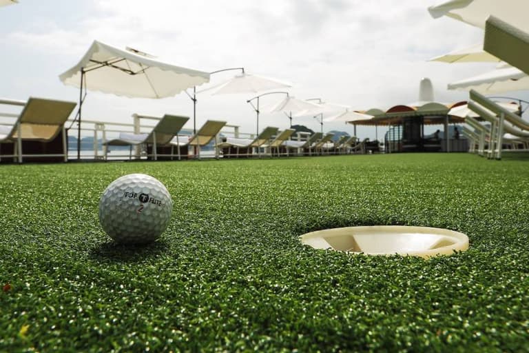 The cruise will make a stop at the Frog Lagoon area, opening up countless options for water activities such as: immersing oneself in the swimming pool, relaxing in the Jacuzzi, or trying out the mini-golf course on the top deck.
