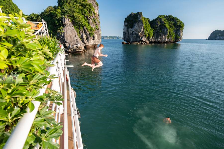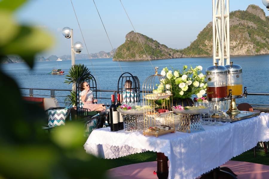 • Enjoy a Sunset Party on the sundeck with Vietnamese special tea, fresh tropical fruits and snacks.