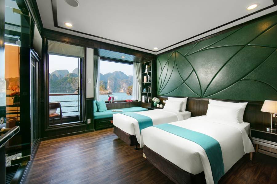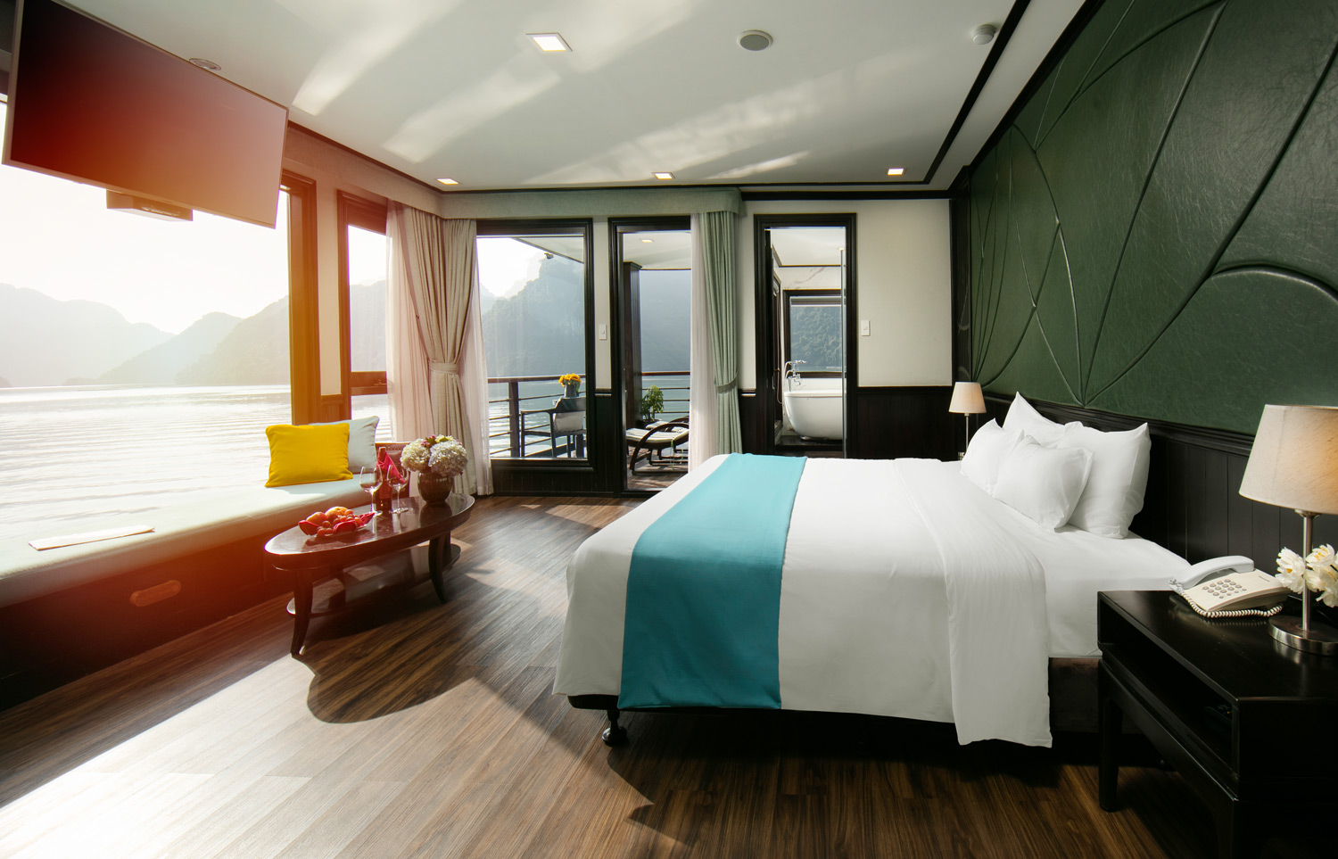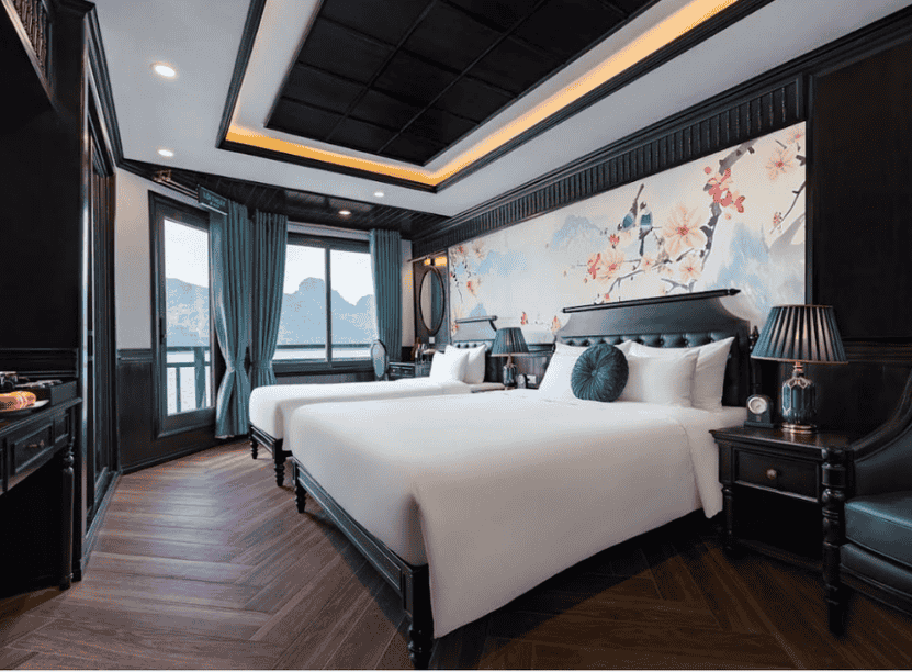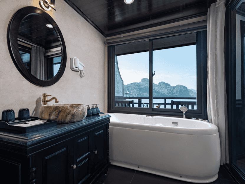 If you’ve experienced the Mon Cheri Cruise, you’ll be surprised by the cabins with balconies. From inside your cabin, you can enjoy privacy and admire the bay scenery. The Lan Ha Bay luxury cruise offers various room categories, accommodating 3 to 5 people per room. Cruise staff clean the rooms daily, so you can rest assured about the cleanliness of your cabin.