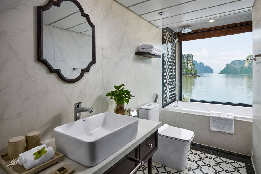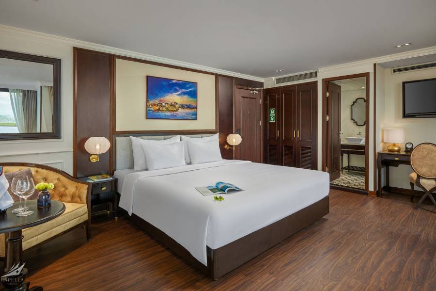 The space on Capella Cruise offers up to 30 luxury cabins, spacious with a system of skylights, private balconies, and bathtubs overlooking the bay, providing a trendy resort style. Every aspect of Capella Cruise is designed to be a place to mark wonderful memories for your trip and your family. Choose Capella Cruise for an unparalleled experience.