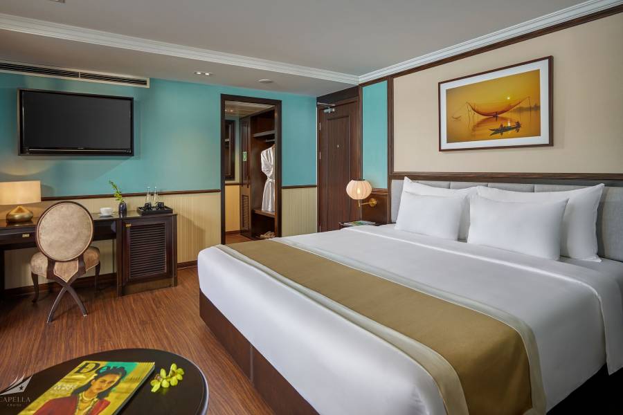 Capella Cruise Tours is inspired by the Indochinese architectural style. Every detail in the cruise design is carefully considered based on the careful calculation of functionality and aesthetics in each customer experience. With a journey to explore Ha Long Bay – Lan Ha Bay, visitors will enjoy a trip in the heart of natural heritage, immersing themselves in the beauty of the paradise bay. This exceptional journey is brought to you by Capella Cruise.