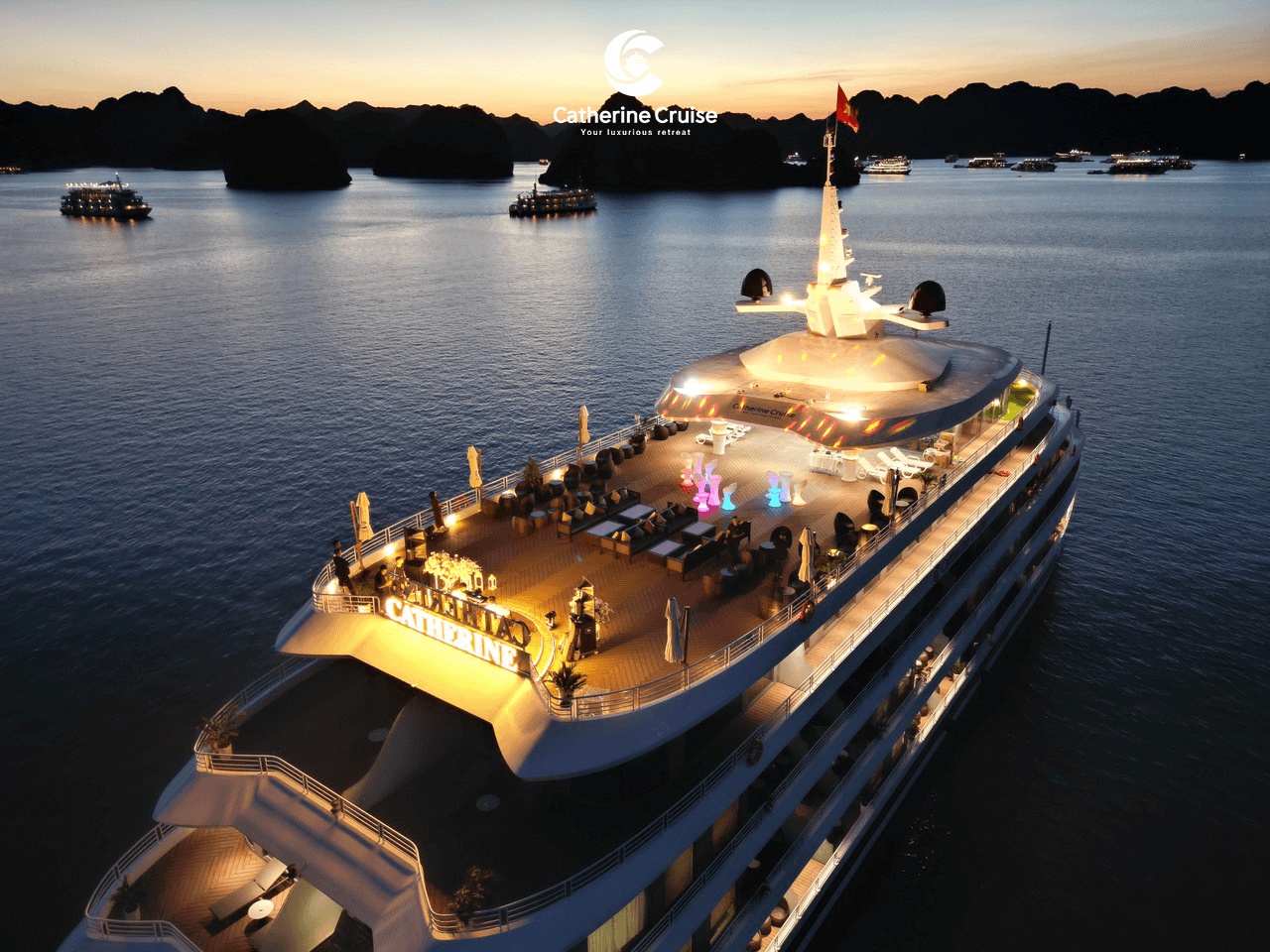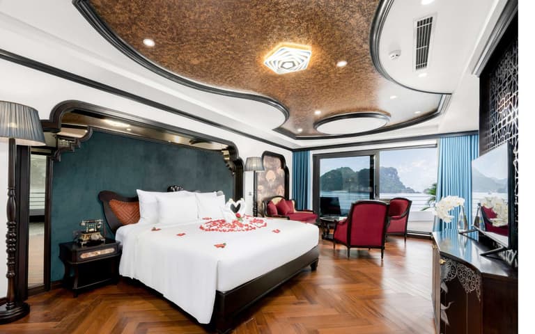 A miniature resort serving all requirements will bring memorable moments of reinvigorating relaxation in the middle of the world-class wonder Ha Long Bay. Catherine Cruise launching in October 2023 has a comfortable luxury space with an impressive design style. Having a length of 90m and a width of 15m, Catherine can accommodate up to 117 guests. With a large room area from 40m2 to 200m2 and the romantic scenery of Ha Long Bay, Catherine Cruise will surely bring guests an extremely comfortable and luxurious experience every second and every corner.