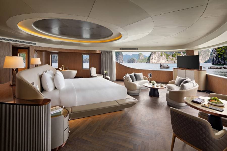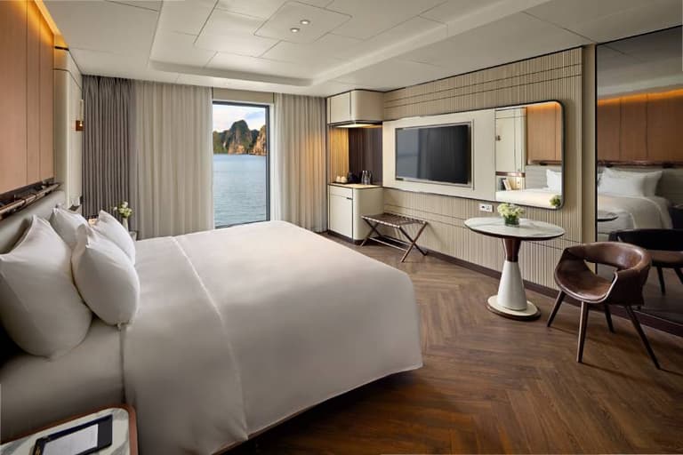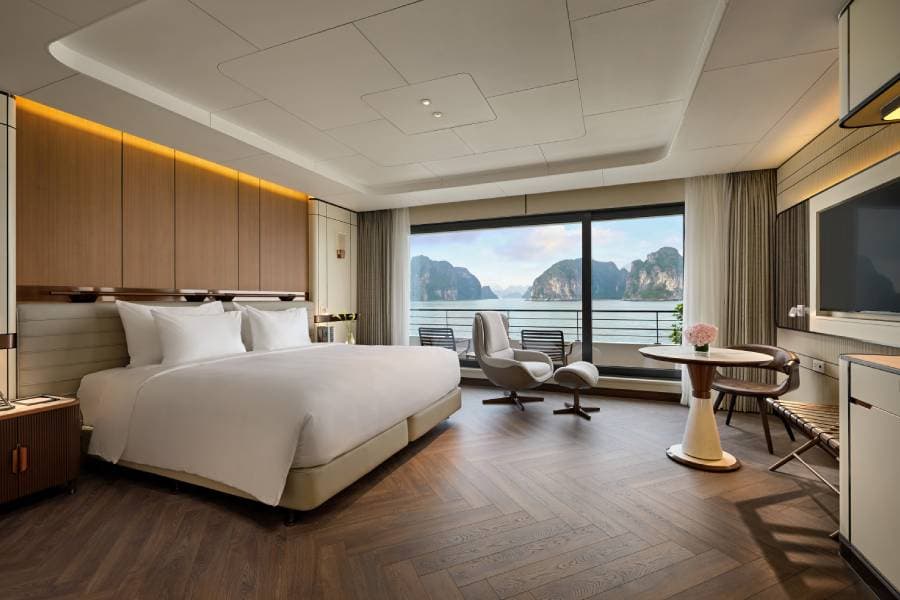 Guests are treated to spacious, elegantly appointed suites with panoramic bay views on Grand Pioneers II Cruise, gourmet dining featuring locally sourced ingredients, and a curated selection of wellness and recreational activities, all designed to minimize ecological impact. The itineraries of Grand Pioneers II Cruise are thoughtfully crafted to showcase the natural splendor of Halong Bay while educating guests on its delicate ecosystem.