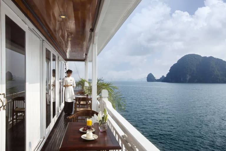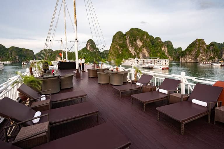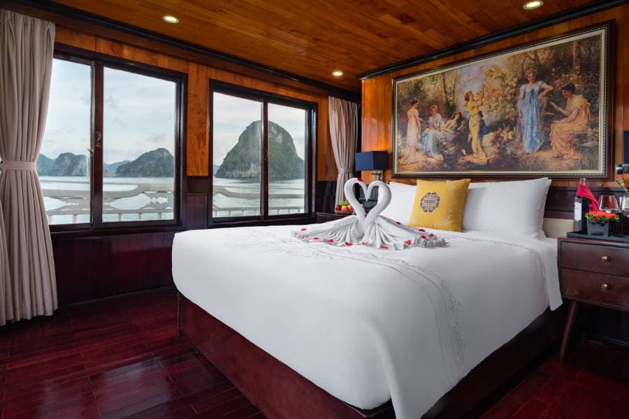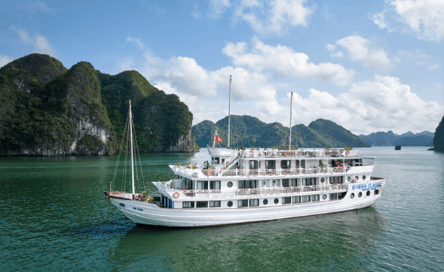 Hera Classic Boutique Cruise is a 5* cruise designed in classic style. The cruise offers an intimate and luxurious Halong Bay experience with 19 spacious cabins, emphasizing boutique wellness. The elegant accommodations are designed for both relaxation and exploration, providing a uniquely comfortable and personalized journey.