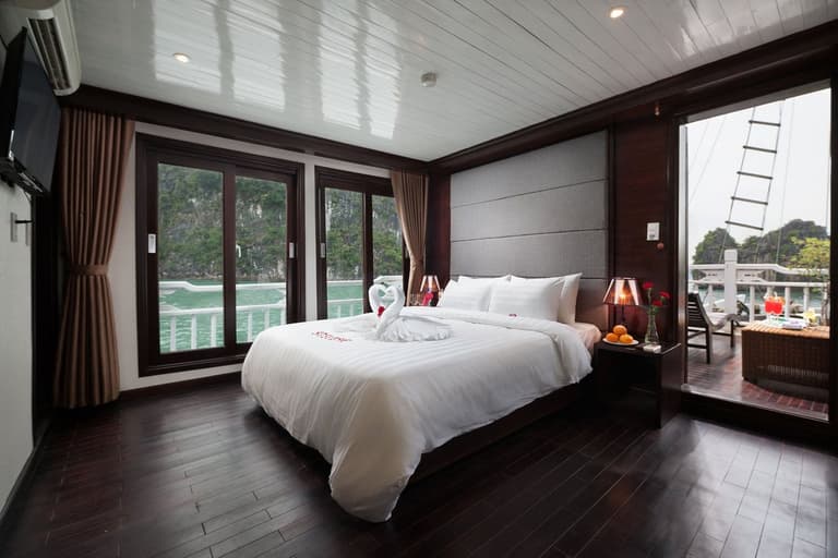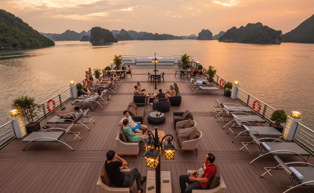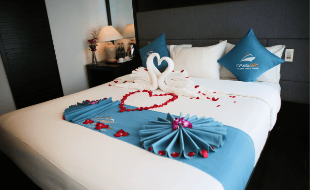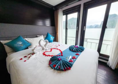 Oasis Party Cruise redefines luxury in Halong Bay by masterfully merging opulent indulgence with a profound commitment to environmental stewardship. Its signature lies in the seamless integration of eco-conscious practices on Oasis Party Cruise, from sustainable energy usage to waste reduction, without compromising on the lavish experience guests expect. This commitment of Oasis Party Cruise is evident in its meticulously designed, spacious suites, each offering panoramic bay views, and its array of high-end amenities, including gourmet dining, spa services, and a state-of-the-art fitness center.