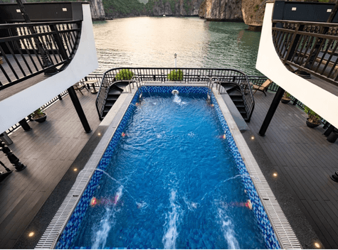 Rita Cruise is newly 5-star++ cruise. It is the first cruise with available swimming pool and private soundproof Karaoke lounge and TV Satellite. All cabins have private balcony with ocean views. The itineraries are exclusive and different to all cruises with unique and original Lan Ha Bay where is not too crowed.