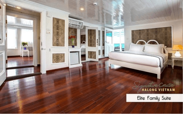 Signature Royal Cruise offers an opulent 5-star experience in Bai Tu Long Bay, featuring extremely large cabins with private Jacuzzis, gourmet dining, and a comprehensive range of activities. Signature Royal Cruise redefines luxury in Bai Tu Long Bay by masterfully merging opulent indulgence with a profound commitment to environmental stewardship.